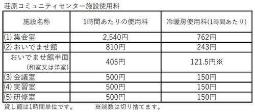 ※施設の空室情報等は、あらかじめ荘原コミュニティセンターへご確認ください。 ★お問い合わせ 荘原コミュニティセンター ☎ 0853-72-4600 報告書、その他各種様式はこちらから |