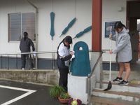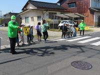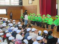| 4月10日 青パト見守り顔合わせ会 荘原小学校の全校児童と今年度最初の対面です。新1年生初めての下校に合わせてパトロールを行います。青パト、見守りの隊員の皆様には感謝。今年度もよろしくお願いいたします。 |