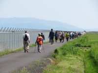 | 4月13日 健康スポーツ部主催事業、恒例の春のウォーキング。今年は開催地を変更して出雲空港滑走路周辺で行いました。離発着の大迫力を真上に見ながら、少し肌寒い4月の風の中を気持ちよく歩きました。 |