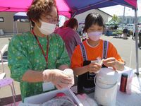 | 5月18日 コミセン子どもマルシェ開催 小中学生の子どもたちがお店に立って販売体験。 地元のお店の皆さんの協力で、好天の下賑やかに開催!最初は遠慮がちの子どもたちも時間が経つにつれて大きい声で呼び込みをしたり、商品を持って販売に歩いたりと大活躍でした。 |