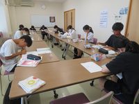 | 7月24日 サマースクール前期スタート 恒例の子ども事業 小学生、中学生で部屋に分かれて学習します。 多くの講師の先生の指導を受け、学習も捗ります。 |