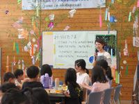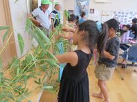 6月のおいでませの会は、荘原小学校1年生さんとの交流。 みんなで七夕の短冊に願い事を書きました。 |