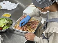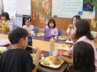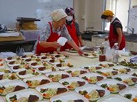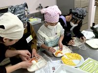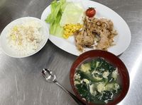 | 11月23日 今年度2回目の子どもクッキング教室開催(ふぁみ~ゆ にて) さつまいもご飯、豚肉マーマレード焼き、かきたま汁、ソフトプリン 美味しくできました♪ |