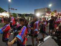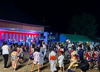 | 7月24日 今年も本日より盆踊り教室が始まりました。地域の伝統を受け継ぐ大事な事業の一つです。10日以上の練習を重ねて、様々なイベントで披露します。今年は約70名参加の大所帯です。初日には、保健師さんによる熱中症予防のお話もありました。 |
