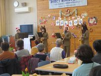 | 12月7日 やまももの会クリスマス会開催 総勢80名を超える参加者で会場いっぱいになりました。『サキソフォンカルテット結』の皆さんの演奏と楽しいトークが会場を盛り上げ、賑やかで楽しい会となりました。 |