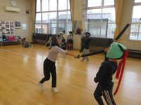 | 12月14日 子どもニュースポーツ教室 スポーツチャンバラに初挑戦です。最初は遠慮がちだった子どもたちも、徐々にヒートアップ。後半はクリスマス会。各自の出し物でこちらも盛り上がりました。 |