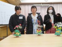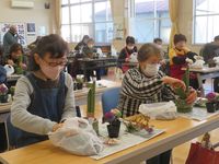 | 3月15日 今年度最後の子どもお花教室 講師の先生方には1年間大変お世話になりました。上手に生けた作品は、コミセンロビーにて3月21日(金)まで展示しています。子どもたちの力作、ぜひご覧になってください。 |
