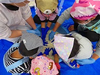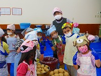 | 9月19日 さつま芋掘り コミセンこども倶楽部事業 春に植えたお芋の収穫です。 保育園、幼稚園児さんと一緒に収穫です。このお芋は、文化祭で販売されます。 |