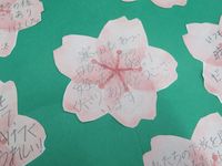 | 3月13日 荘原小学校の6年生さんが、卒業プロジェクトで地域の方々に「お礼の木」をつくってコミセンに持ってきてくれました。心温まる桜の木が3本。コミセンの玄関を彩ります。 |