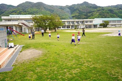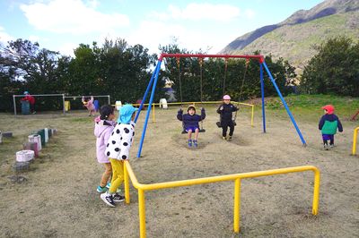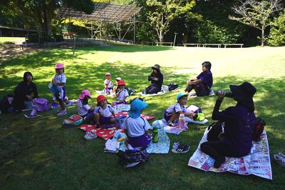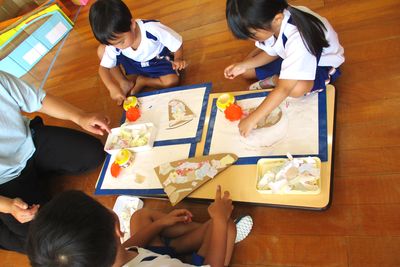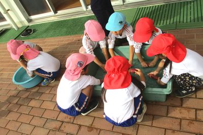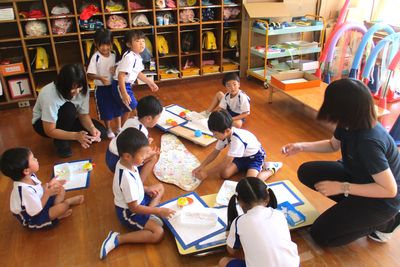 地域の方々は温和で人情味豊かであり、教育に寄せる関心も高く、幼稚園の教育活動に協力的です。また、本園は遙堪小学校と隣接しており、年間を通して、小学校との交流活動を行っています。