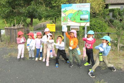 園児たちは、豊かな自然の中に出かけて様々な体験をしています。水田周辺や用水路で生き物探しをしたり、四季折々の自然物を探したり遊びに取り入れたりしています。
