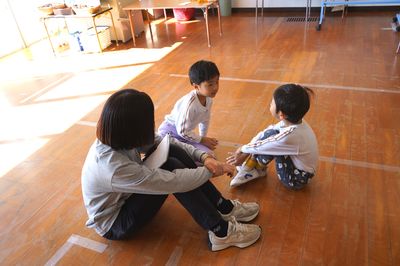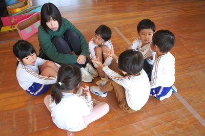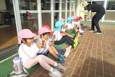 全員で過ごすことが多いのですが、時には、年中すみれ・年長ひまわりと年少ももに分かれて活動します。