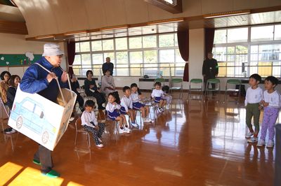 令和7年11月6日(木)の1コマです。今日は保育公開日でした。保護者のみなさんに、子どもたちが楽しく遊ぶ様子を見ていただいた後、親子防犯教室をしました。「いのち」や「からだ」を守る大切な勉強をしました。