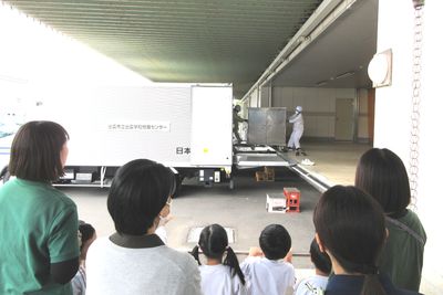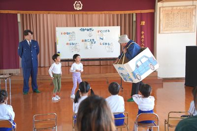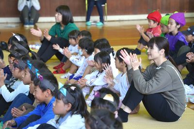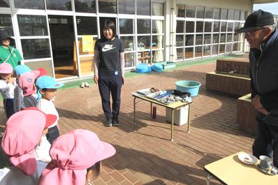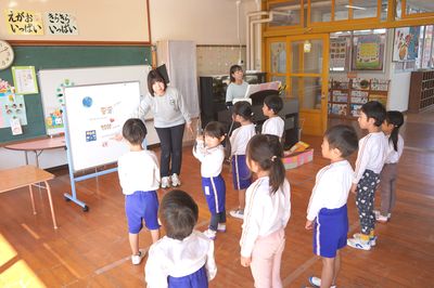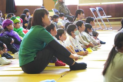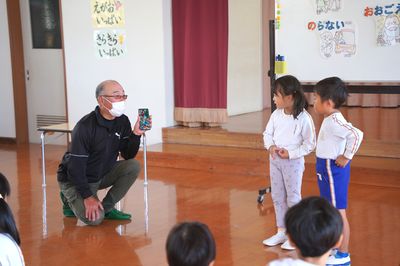 遙堪幼稚園の9名は、目を輝かせて見ていました。遙堪小学校を身近に感じ、小学校のお兄さんお姉さんにあこがれの気持ちを持つことのできる良い環境だと感謝しています。