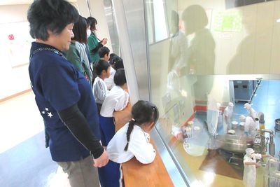給食センターで食べる給食はいつも以上においしくて、すべての食缶が空っぽになりました。とても良い体験ができました。給食センターのみなさんありがとうございました。