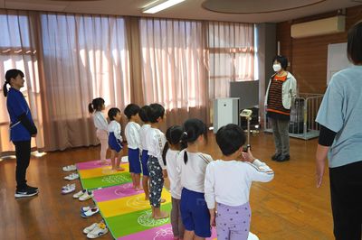 令和7年11月11日(火)の1コマです。11月の体重測定をしました。楽しく歌を歌ったり、いろいろな技にチャレンジしたりしました。年長は、今まで体験してきたことを楽しく思い出しました。生活発表会の劇ができそうです。