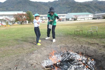 ご招待した畑名人さんと焼いていただいた学校校務員さんと一緒に焼き芋を食べました。全員がそろっておいしい焼き芋を食べたのでとても良かったです。お世話になったみなさん、ありがとうございました。