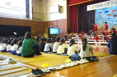 令和7年11月14日(金)の1コマです。今日は、ようかんっ子フェスタのリハーサルを見せてもらいました。小学校と隣接しているので、毎年、お兄さんお姉さんの発表の様子を見せてもらっています。