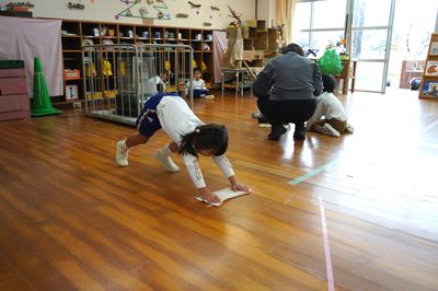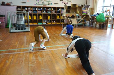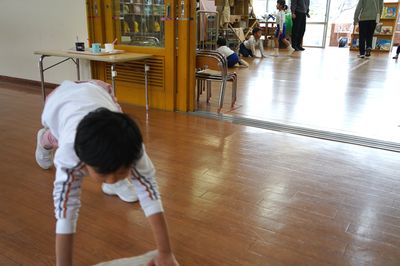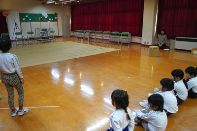 年少もも組もお兄さんお姉さんに習って、楽しく身体を動かしました。