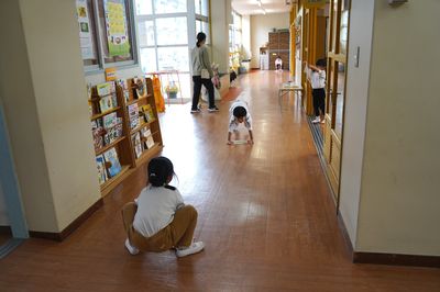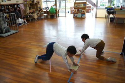 令和7年12月4日(木)の1コマです。今日は掃除の様子をお届けします。コミセンの掃除ボランティアでも雑巾がけをしましたが、園でも雑巾がけを続けています。