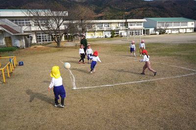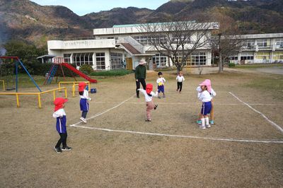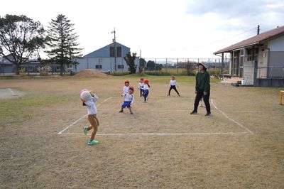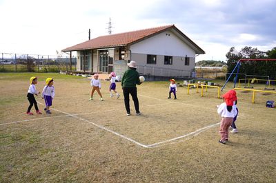令和7年12月10日(水)の1コマです。外で活動できる穏やかな日となりました。外でドッジボールをしました。