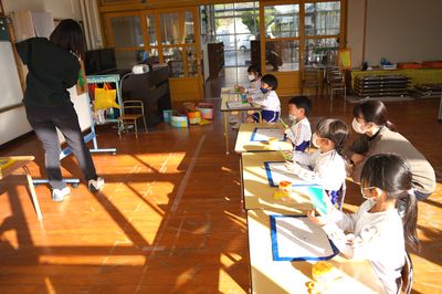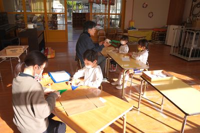 令和7年12月11日(木)の1コマです。今日も良い天気になりました。朝の会の後、折り紙をしました。