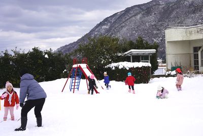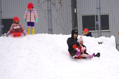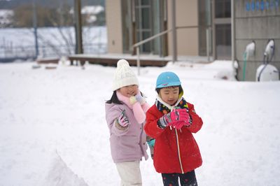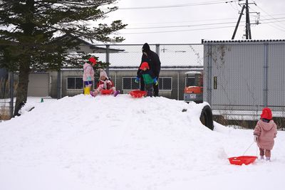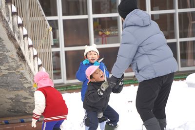 そりをしたり、雪を集めたり、つららを見つけたりして、思い思いに冬の世界を楽しみました。