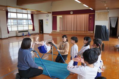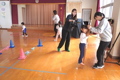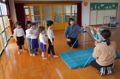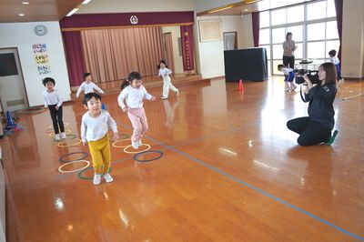 令和8年2月4日(水)の1コマです。天気が良く、過ごしやすい一日となりました。にこにこタイムに続いて、広い場所で身体を動かしました。