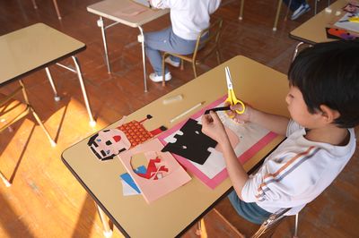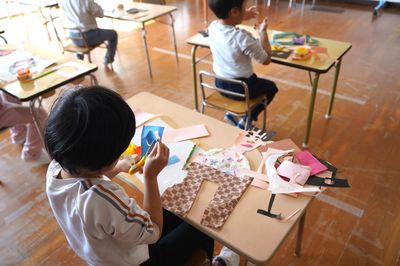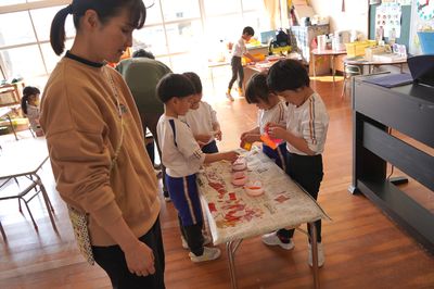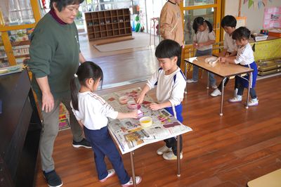 半紙に絵具を染み込ませてきれいな模様も作りました。幼稚園での経験は、これから先の学習へとつながっていきます。自分で考えてやってみることが大切です。