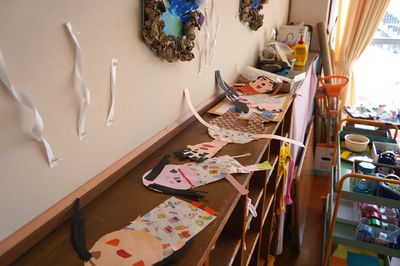 令和8年2月13日(金)の1コマです。今日は、楽しく制作活動をしました。いろいろな色の紙を使って、自分を作りました。顔の大きさ、髪の色、目の色・・・それぞれの良さがいっぱいの楽しい作品ができました。