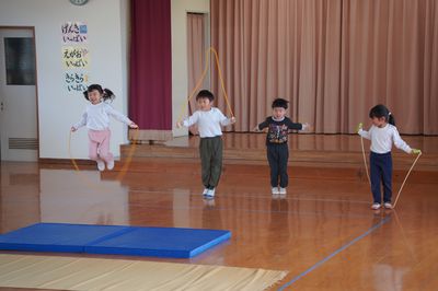 後半の写真は、午前中の様子です。なわとび練習をしたり、やりたい遊びをしたりして、思い思いに過ごしました。