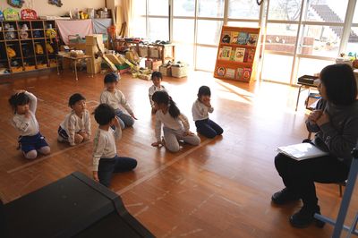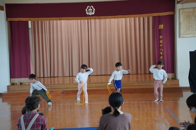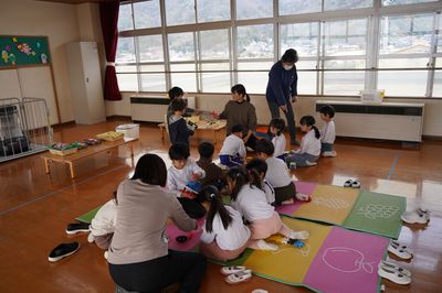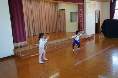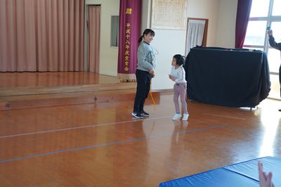 令和8年2月20日(金)の1コマです。今日は一日入園でした。遊戯室で発表を見てもらったり、一緒に遊んだりしました。がんばっていることを見てもらってうれしかったです。