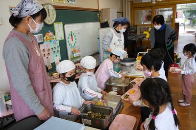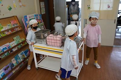 昼食は小学校と同じ給食です。(休業中は給食がありませんが、業者弁当の注文もできます。)