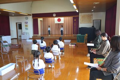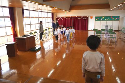 令和8年3月19日(木)の1コマです。卒園式を行いました。来賓の皆様、ご家族の皆様が見守る中、2名が巣立っていきました。