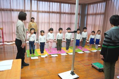 令和8年3月10日(火)の1コマです。今日は、今年度最後の身体測定をしました。小学校の保健室の先生に来ていただき、身長と体重を測りました。
