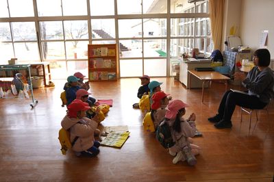 令和8年3月11日(水)の1コマです。気持ちの良い天気の一日でした。本日は帰りの会の様子をお届けします。帰る準備をした後、手遊びをしたり、読み聞かせをしたりしています。