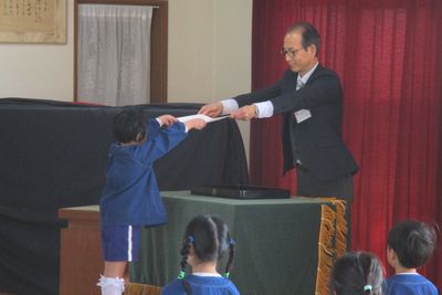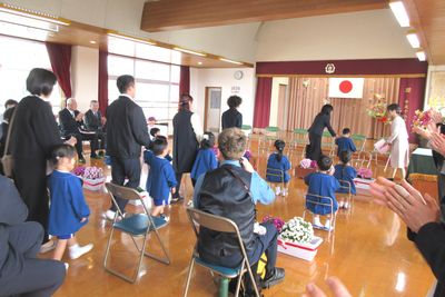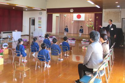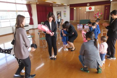 卒園児のお別れの歌と言葉がとてもすばらしく、会場にいるみんなの心に伝わりました。たくさんの思い出をありがとう。小学校でもがんばってください。