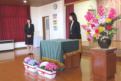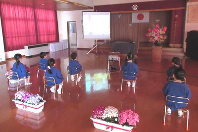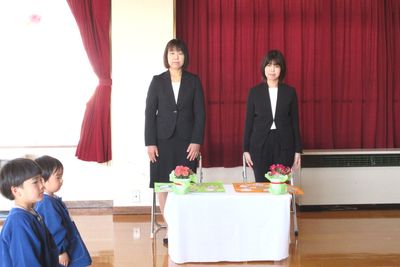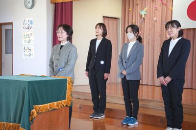 修了式の後、離任式をしました。2名の先生とお別れをしました。子どもたちのために大変お世話になった先生とのお別れはさびしいですが、4月からも元気にお過ごしください。ありがとうございました。