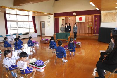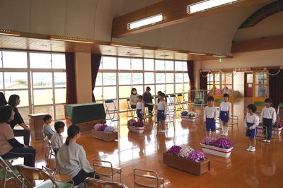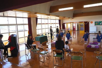 始業式の後、入園式の練習をしました。入園式は4月13日(月)に行います。6名が入園する予定です。とても楽しみです。