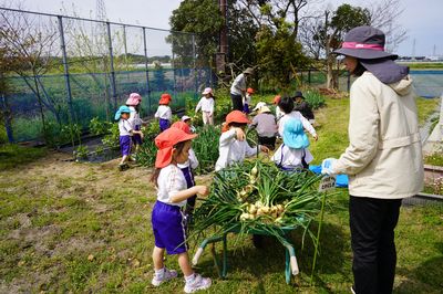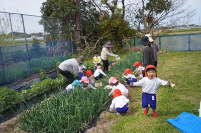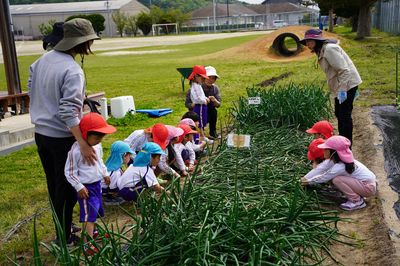 今年度入園した友だちも大喜びで収穫しました。早生の「ソニック」や晩生の「もみじ」も育っているので、5月にも収穫を体験できます。玉ねぎ好きが増えそうな遙堪幼稚園です。