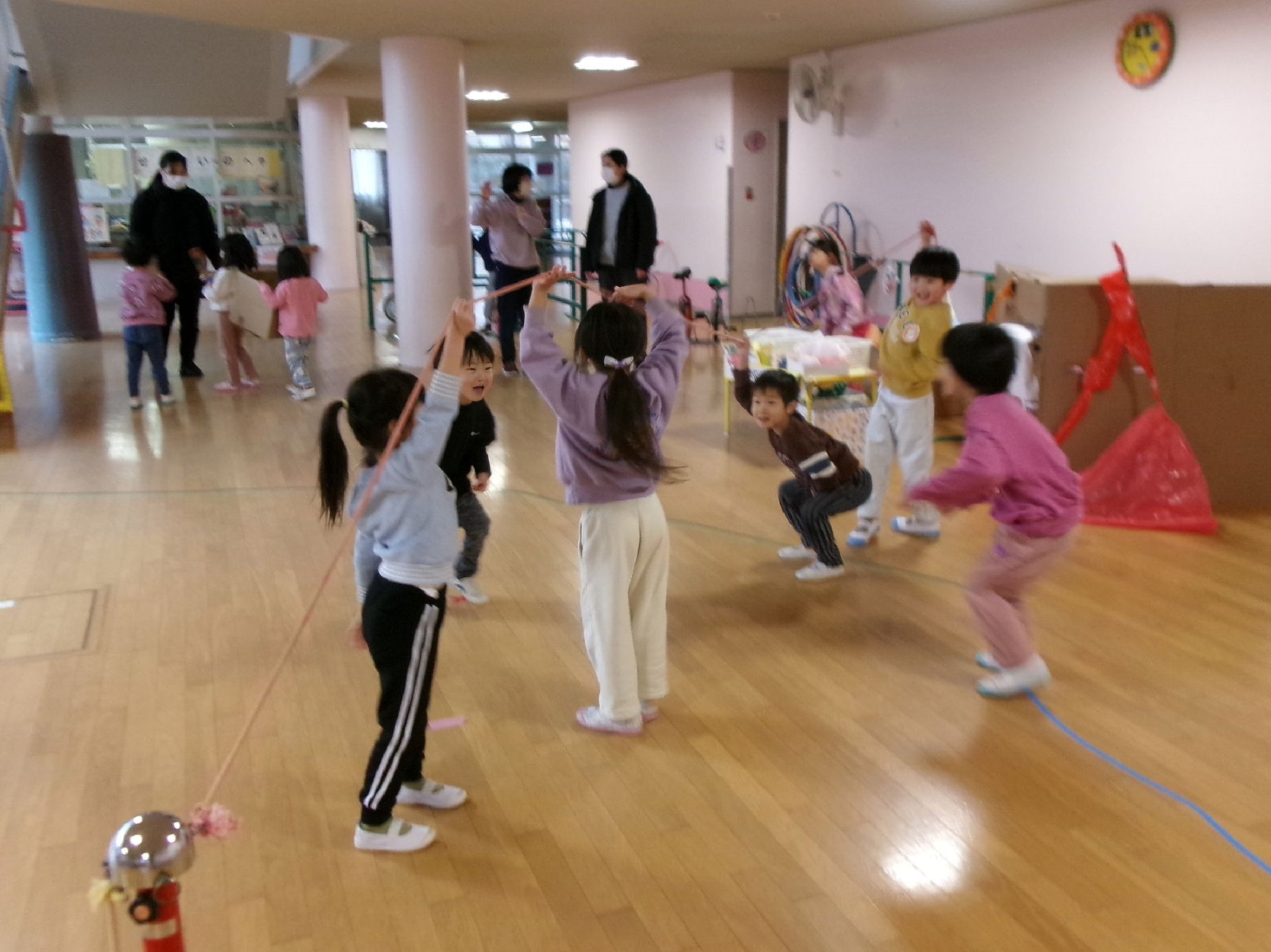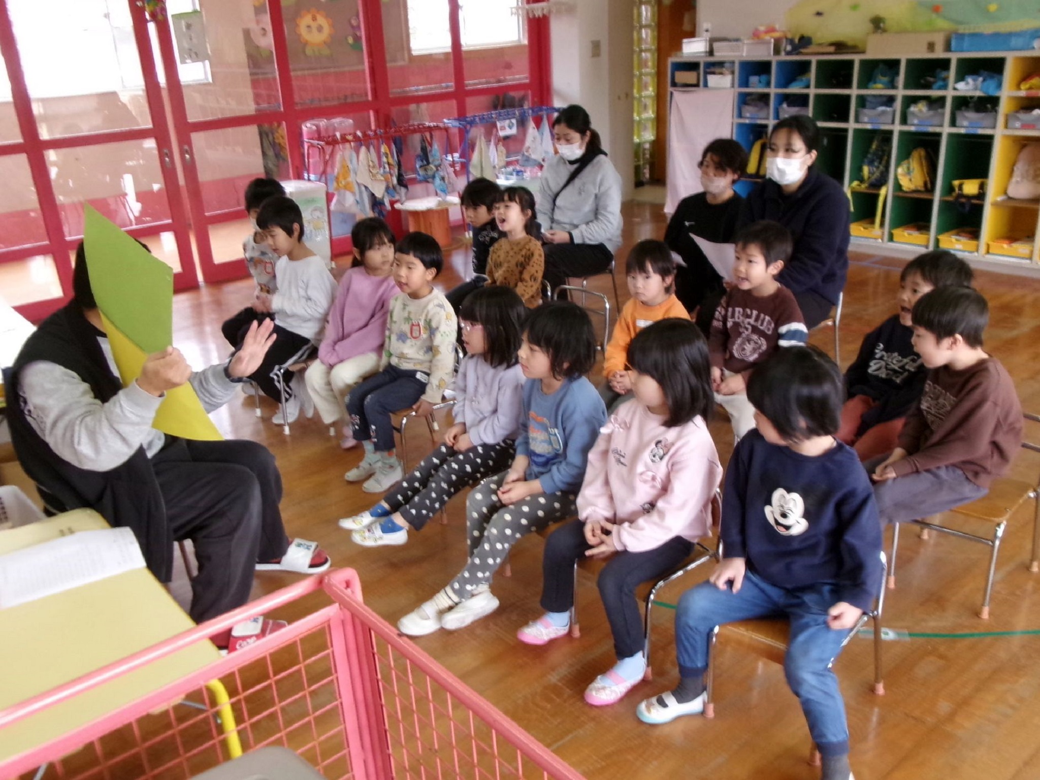卒園記念の写真立てを作っています。 年少・年中も卒園式の練習を開始しました。 登園後みんなで楽しく遊んでいます。