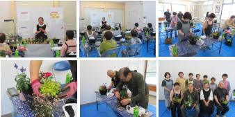 樋野加奈さんにお願いをして初夏から秋まで長く楽しめる寄せ植えを教えてもらいました。男性の参加者もおられ、皆さん和気あいあいと楽しみながら作品つくりをされていました。
