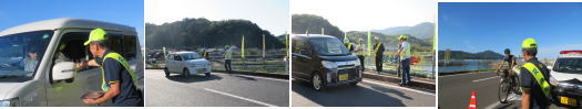 十六島湾へ来られる魚釣りの人々や、運動会へ参加する人へ啓発品を渡し、交通安全の啓発をしました。