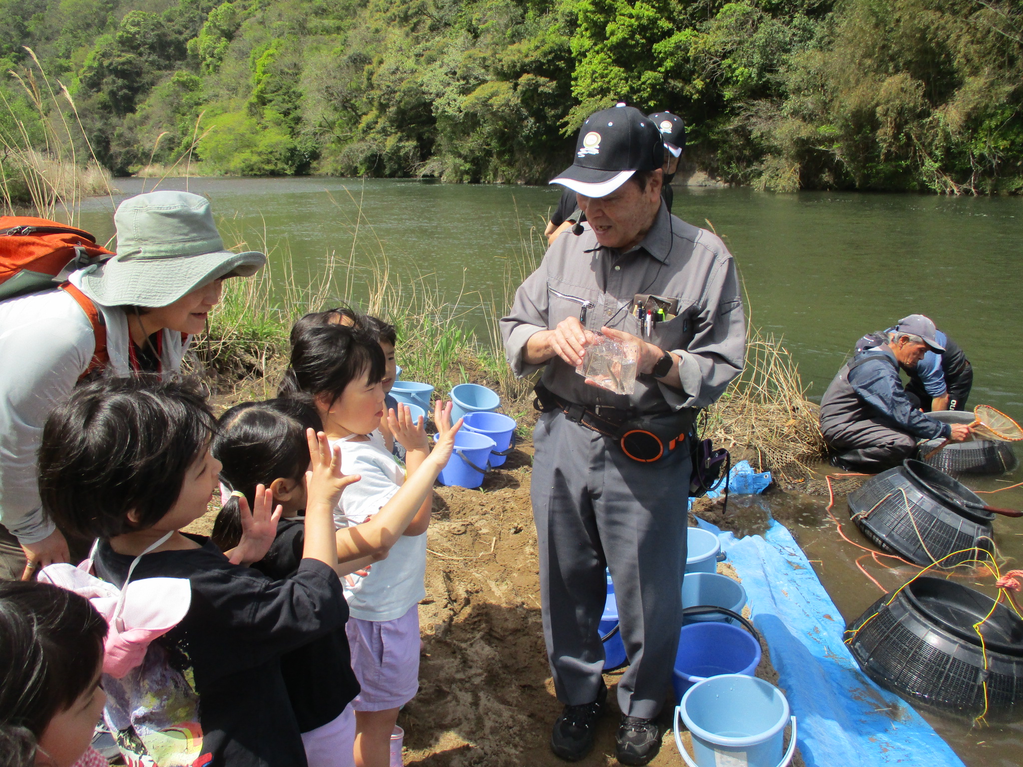 4月21日(金)、神戸川漁協の皆さんにお世話になり、鮎の稚魚放流を体験しました。「元気でね!」「大きくなってね!」と鮎の赤ちゃんを川に放しました。「クジラくらい大きくなるかな?」「川の水がきれいじゃないと大きくなれないんじゃない?」と、つぶやきながら、そっと大事に放つ姿が見られました。