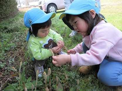 保育所の隣には小学校、周辺には「吉栗の郷」「やすらぎの水辺」などがあり、園外保育や保小連携、地域の人との交流活動など地域の教育力を生かした保育活動を展開しています。