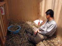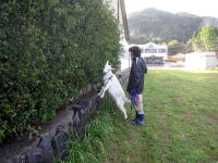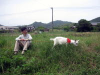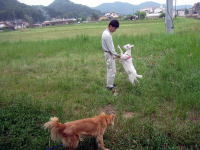 2013.5.31 来てから3日間は人間の赤ちゃんのように泣いて泣いて、大変でした。ようやく慣れてきたので、始めて散歩に出かけました。近くの雑草をムシャムシャと、食欲旺盛でよかった。 |