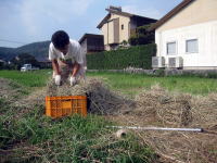 2013.7.21 冬場はどのくらい餌を食べるのか見当がつきません。夏になったばかりですが、冬場に供えて乾草ブロック作りを始めました。草刈がこんなに楽しいとは・・・。 |
