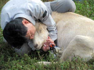 りんちゃんの爪切り、じっと見つめる母「もこ」