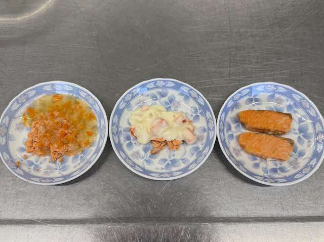 (★写真はデモンストレーションの様子と鮭を使ったメニュー(3種類)です。)