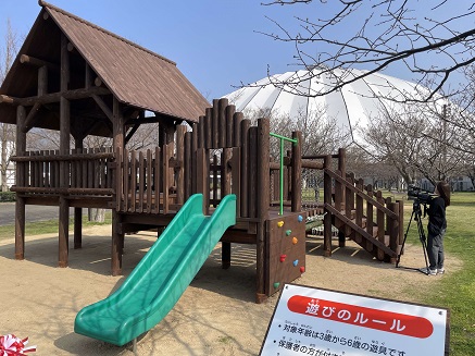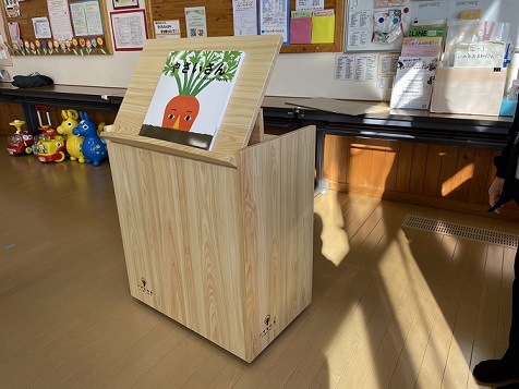 【子育て支援センターで購入した木製品(シアターワゴン)】 【出雲ドーム公園内の設置を支援した木製遊具】